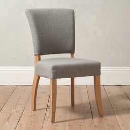 Upholstered in a soft, stone-coloured fabric, our Bluebell dining features a padded seat and backrest for lasting comfort. Its gently bowed wooden legs offer subtle detail, complementing the chair's classic, clean-lined shape. A versatile piece, it pairs effortlessly with a variety of dining tables.