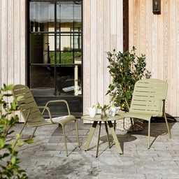 Perfect for smaller spaces like balconies or patios, this charming bistro set adds a subtle splash of colour to your outdoor space. The set includes a table and two lounge-style chairs designed for comfort, each with powder-coated metal frames that resist rust outdoors.